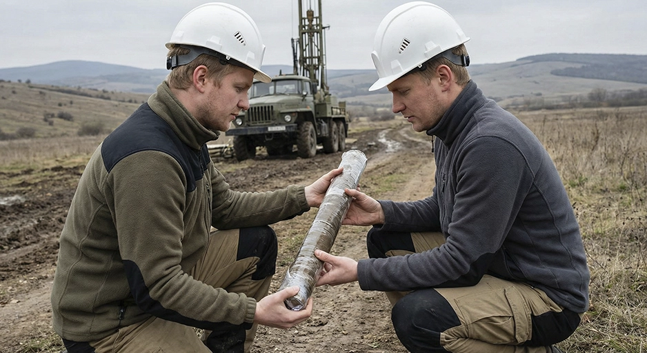 Бурение скважин, отбор проб грунта и воды, лабораторные исследования.